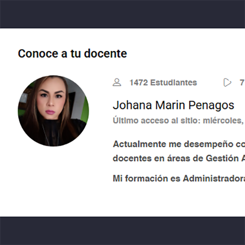 Actualiza en el curso la descripción del docentes ,para que los estudiantes conozcan tu perfil profesional y puedan reconocer al docente de la clase a través de su fotografía profesional